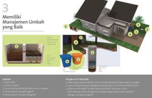 Rumah yang sehat harus memiliki septic tank, sumur resapan, sumber air, penyimpanan sampah organik, dan penyimpanan sampah anorganik. Tata letak penyimpanan limbah juga harus diperhatikan; Jarak antara septic tank dan sumber air agar dibuat sejauh mungkin, sumur resapan berguna sebagai penampungan air sementara dikala hujan.